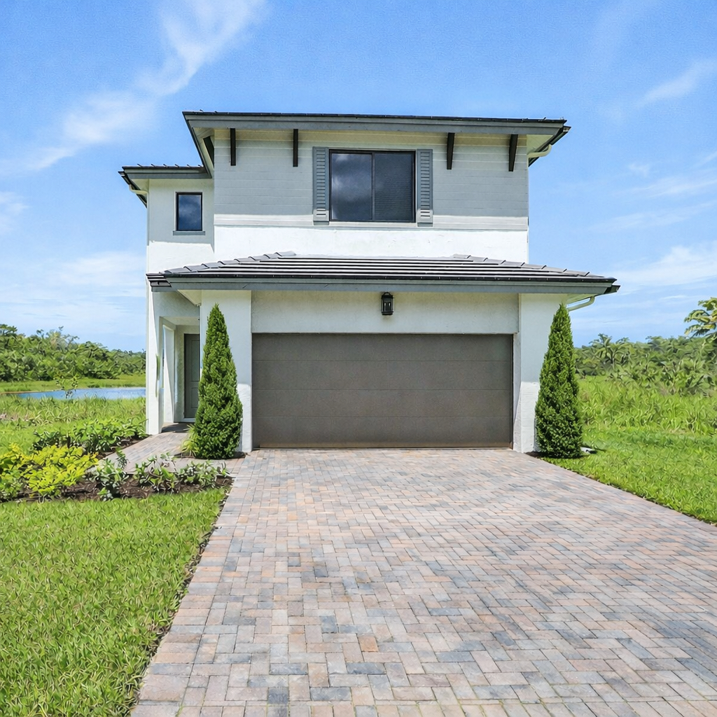 - Brick paver driveway, walkway to home, and covered entry